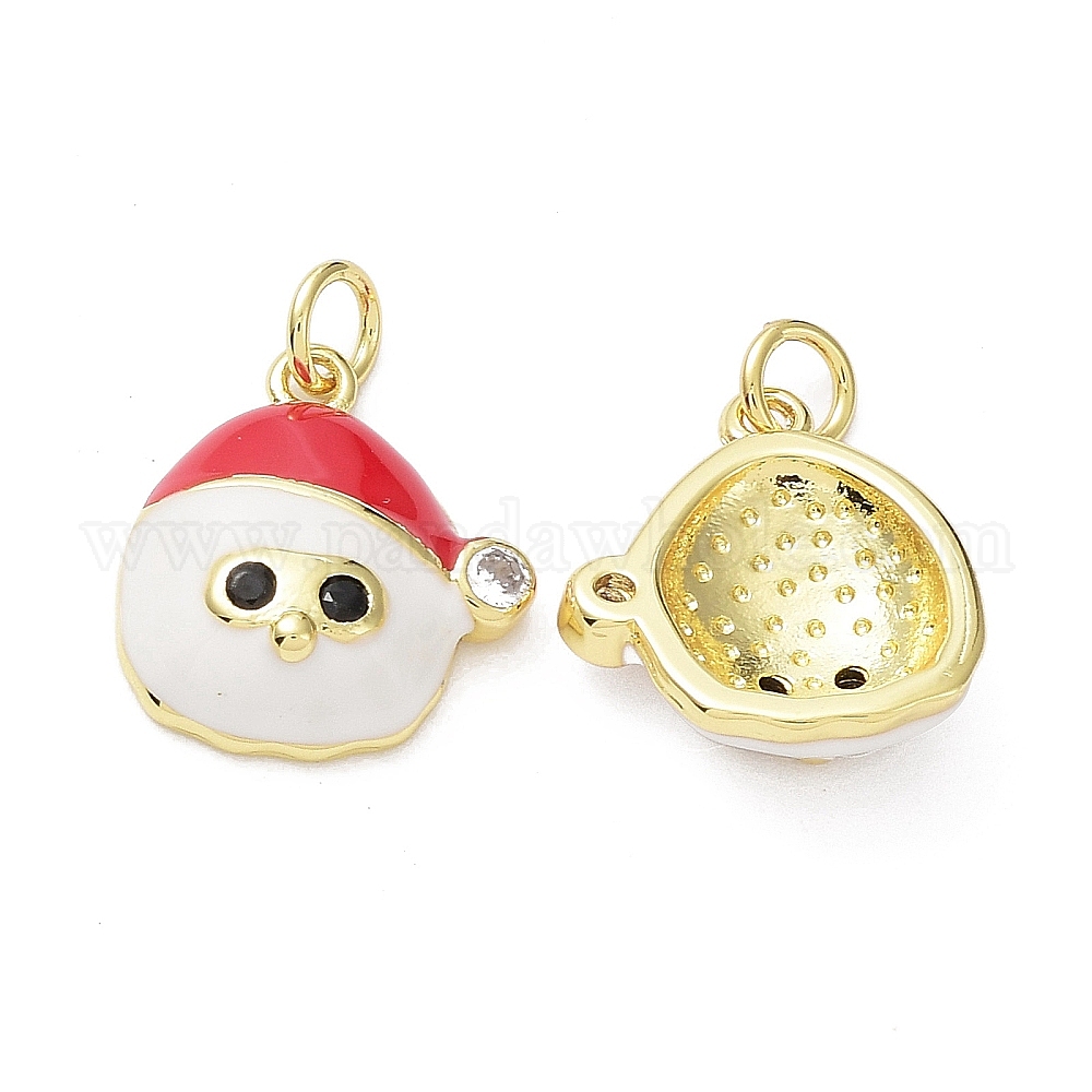 Подвески из латуни с эмалью фианитов, без кадмия и без свинца, стойки покрытие, Новогодняя тема, Дед Мороз