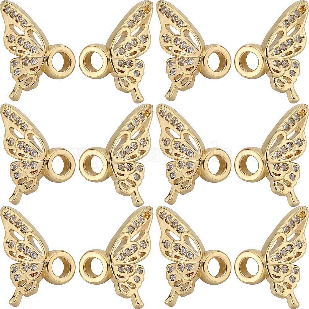 • Настоящее золото 18K 10 комплекты латунных подвесок с микропаве из прозрачного кубического циркония, крыло, реальный 18 k позолоченный, 11x16x5 мм, отверстие : 3 мм