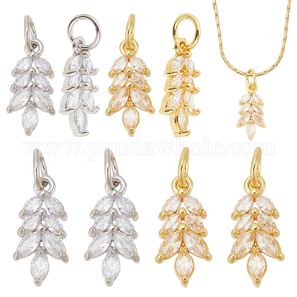 8 шт. 2 цвета стойка покрытие латунь паве кубический цирконий подвески, подвески-листья с кольцом для прыжков, долговечный, без свинца и без кадмия