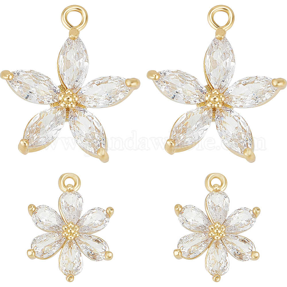 6 шт 2 стильные латунные подвески из прозрачного кубического циркония с микропаве, цветок