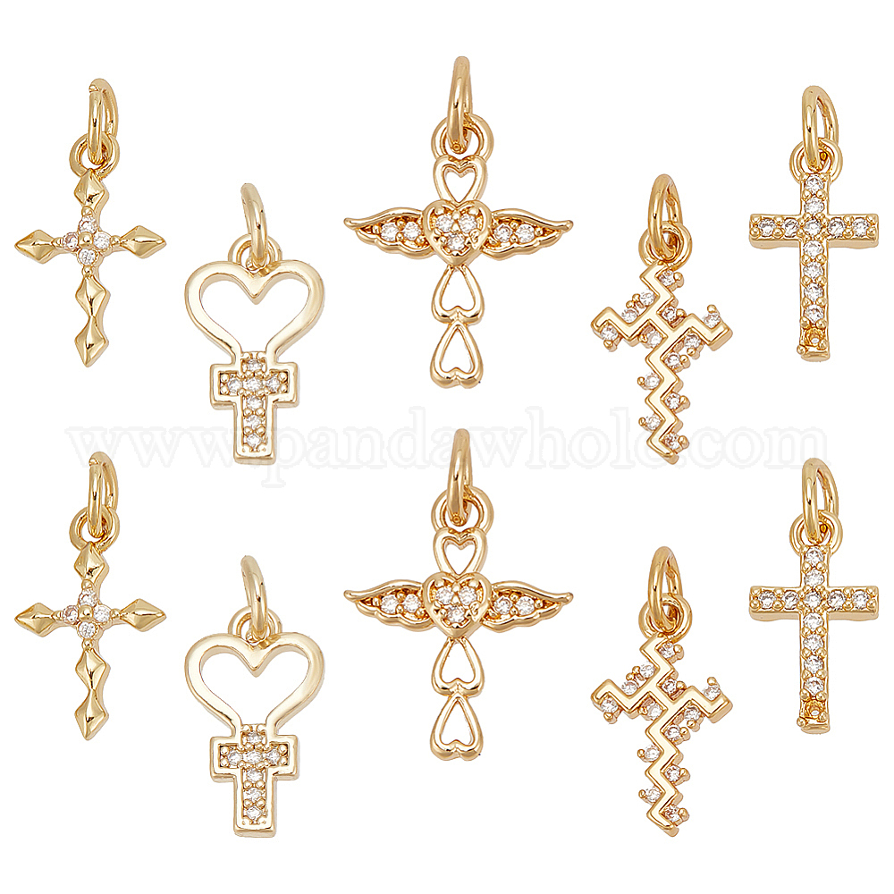 10 шт. 5 стили настоящие 18 латунные подвески с микропаве из кубического циркония, покрытые золотом 18 карат, с целью перехода в кольце, крестик