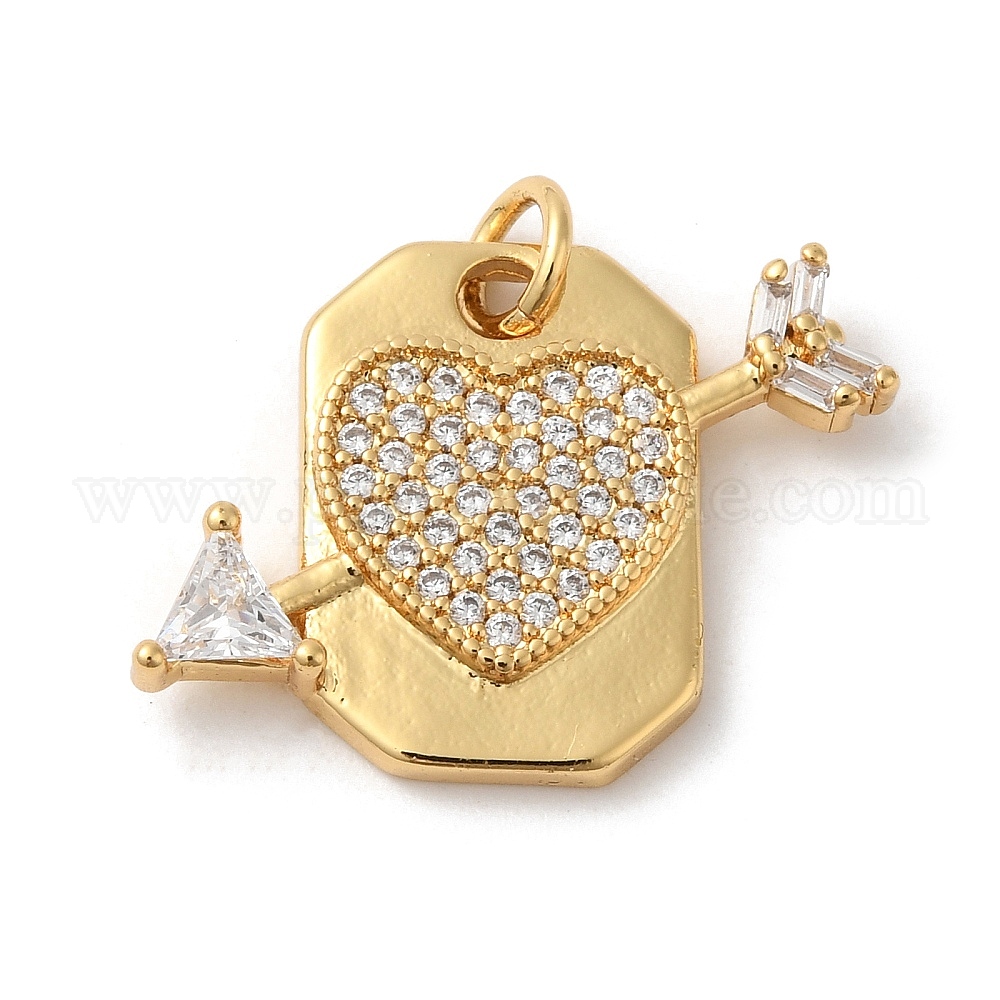 • Настоящее золото 18K Стойка металлическая латунная микропрофилированная кубическая циркония подвески, Перейти кольцо, без свинца и без кадмия, шестиугольник с сердцем, реальный 18 k позолоченный, 16.5x22x3.5 мм, отверстие : 3 мм
