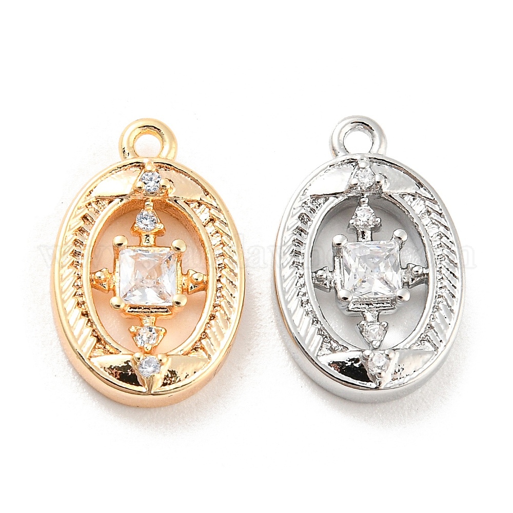 Латунные микро проложить кубического циркония прелести, без кадмия, без никеля и без свинца, со стеклом, овальные