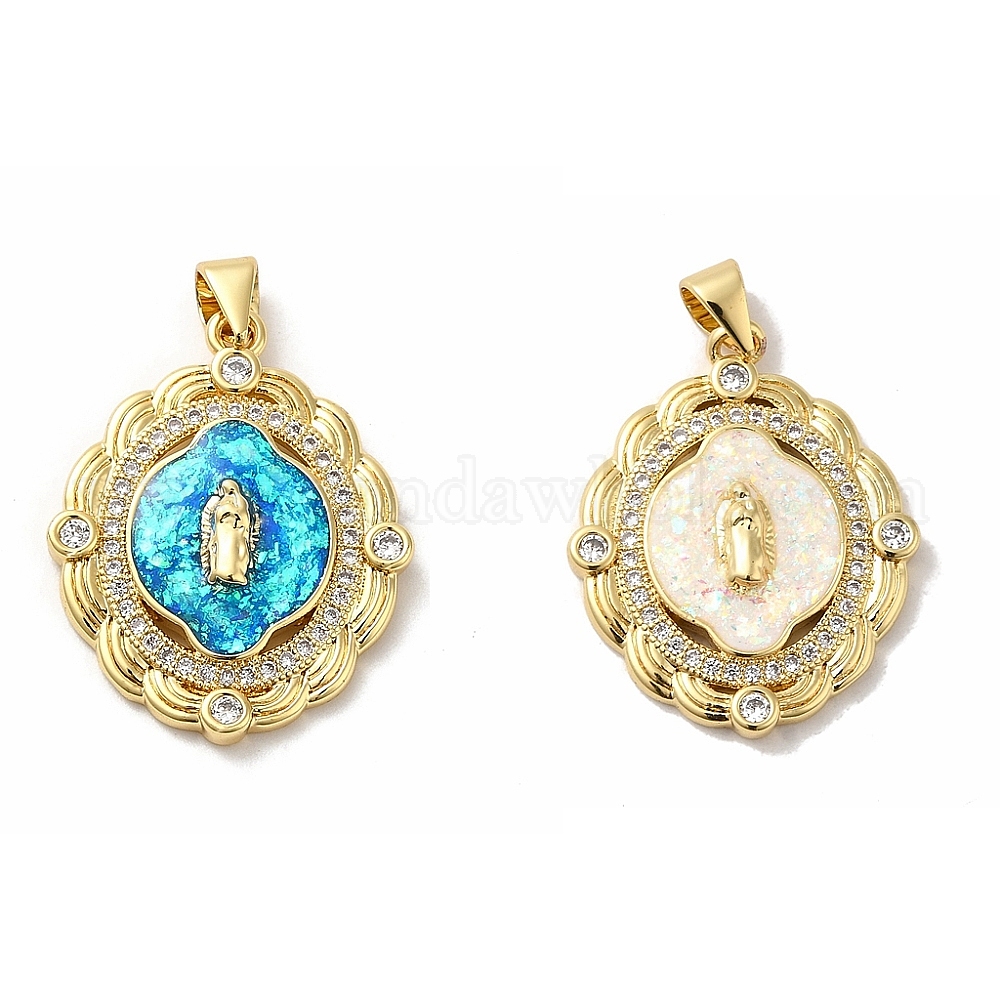Покрытие стойки латунь микропаве цирконий с подвесками из синтетического опала, с целью перехода в кольце, без свинца и без кадмия, долговечный, овальный со святым, реальный 18 k позолоченный