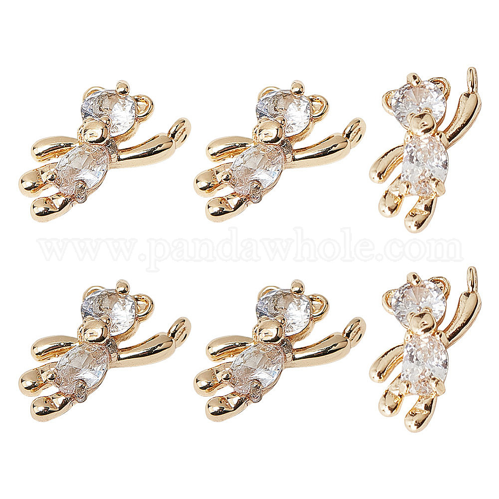 6Шармы из латуни с кубическим цирконием, медведь, прозрачные