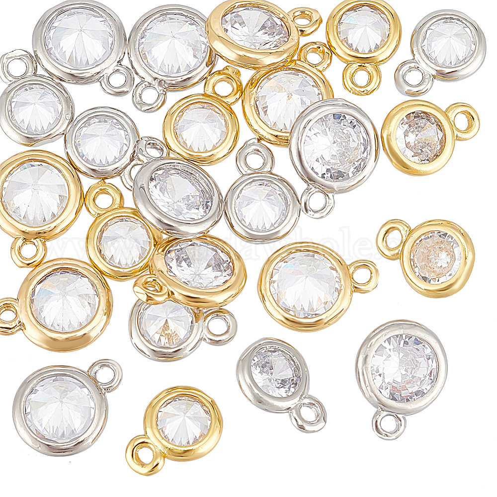 24шт 4 цвета латунные кубические циркониевые подвески, плоские круглые прелести