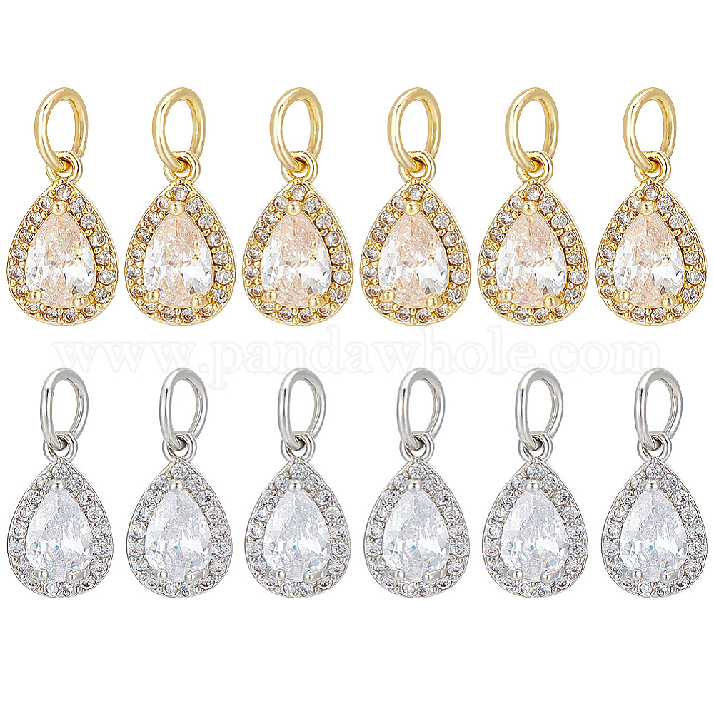 12 шт. 2 цвета стойка покрытие латунь микропаве прозрачный кубический цирконий подвески, с целью перехода в кольце, долговечный, очарование слезы (02QMCW)