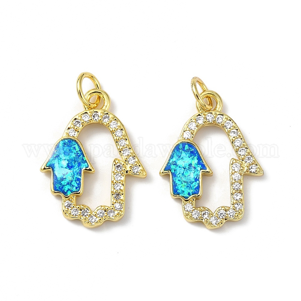 Латунные микро проложить кубического циркония подвески, без кадмия и без свинца, с синтетическим опалом и переходным кольцом, хамса рука