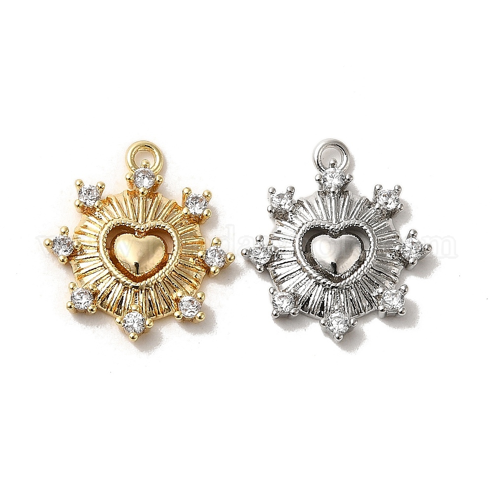 • Платина Латунные микро проложить кубического циркония прелести, солнце с сердцем, платина, 14.5x13x2 мм, отверстие : 1.4 мм