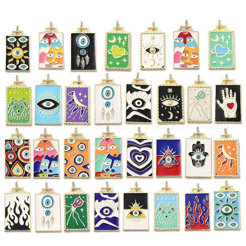 • Разноцветный Кулон из латуни микропаве с фианитами и эмалью, без кадмия, без никеля и без свинца, прямоугольные, красочный, 45.5x25.5x2.5 мм, отверстие : 4.5 мм