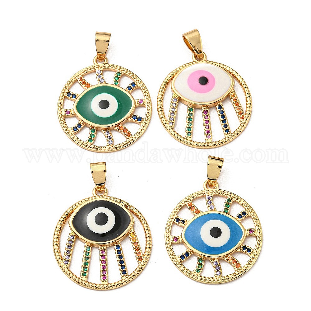 Настоящие 18 к позолоченные латунные подвески, без кадмия, без никеля и без свинца, с кубического циркония и эмали, плоский круглый с оберегами от сглаза