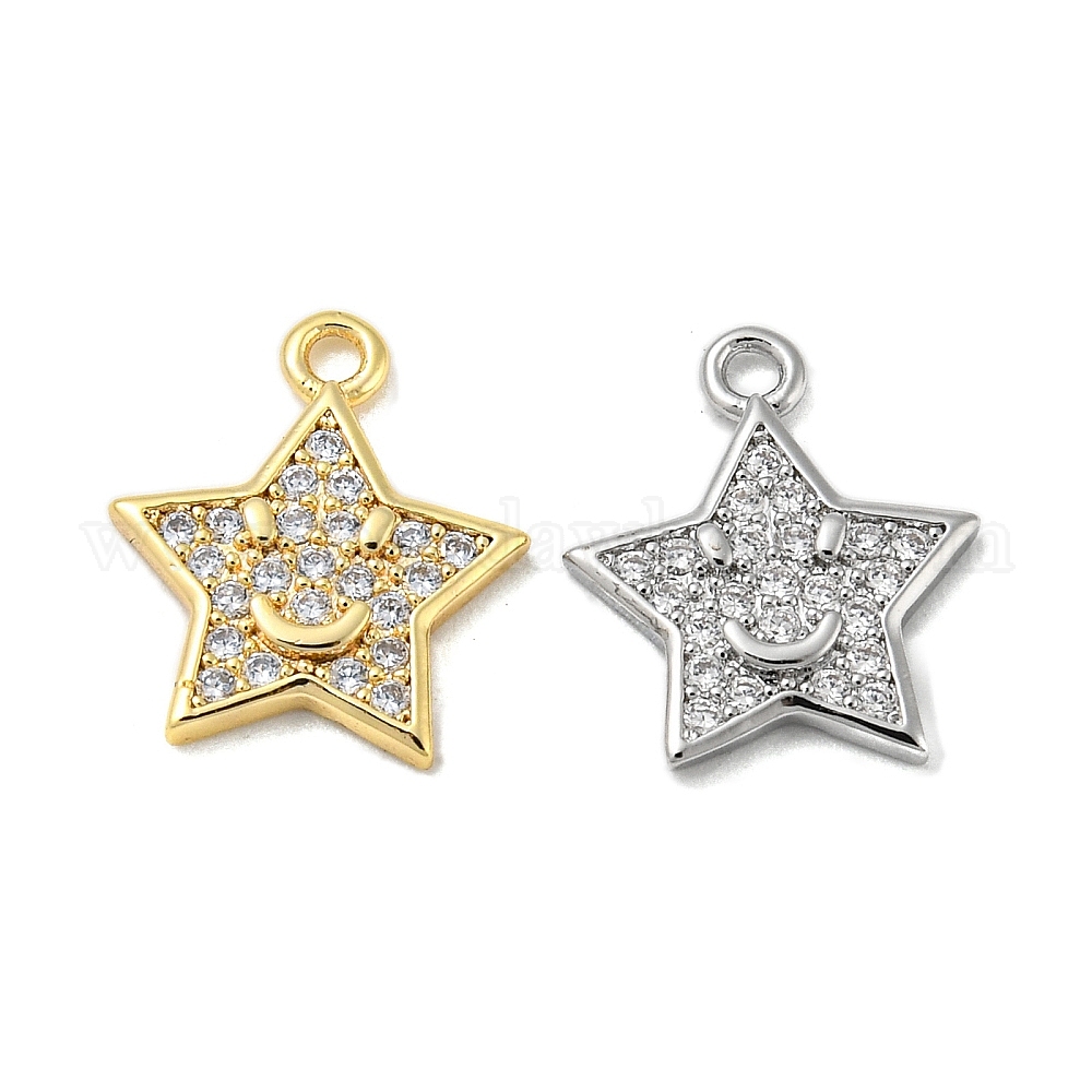 Латунные микропаве прозрачные кубические циркониевые подвески, без кадмия, без никеля и без свинца, звезды с улыбкой лицом