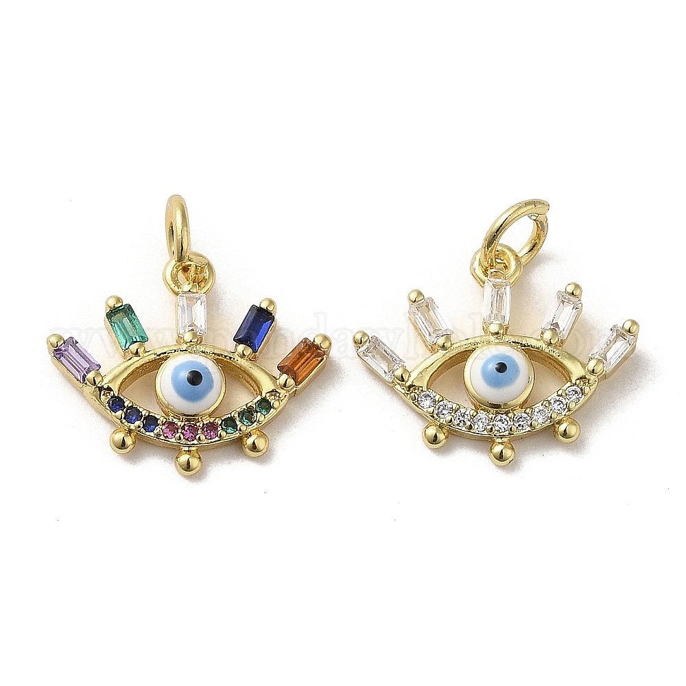 Латунные микро проложить кубического циркония подвески, без кадмия, без никеля и без свинца, С эмалью и стеклом, с целью перехода в кольце, реальный 18 k позолоченный, злые глаза