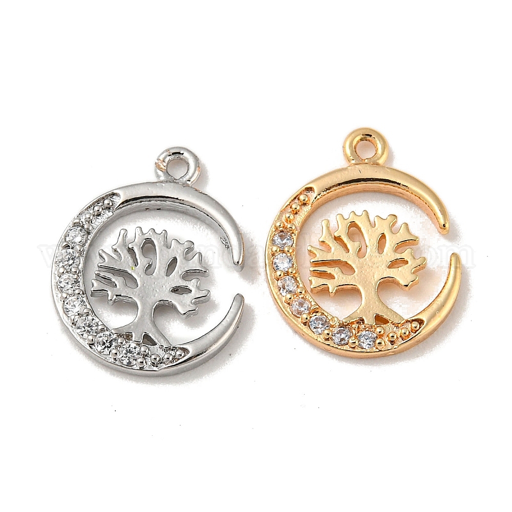 Латунные микропаве прозрачные подвески с фианитом, без кадмия, без никеля и без свинца, луна с деревом жизни