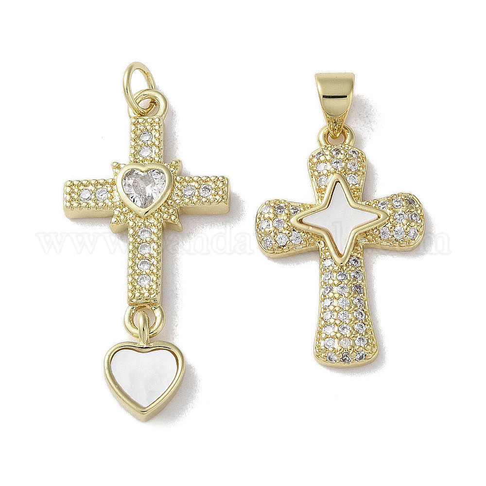 Латунные микро проложить кубического циркония подвески, без кадмия и без свинца, с оболочкой, крестик