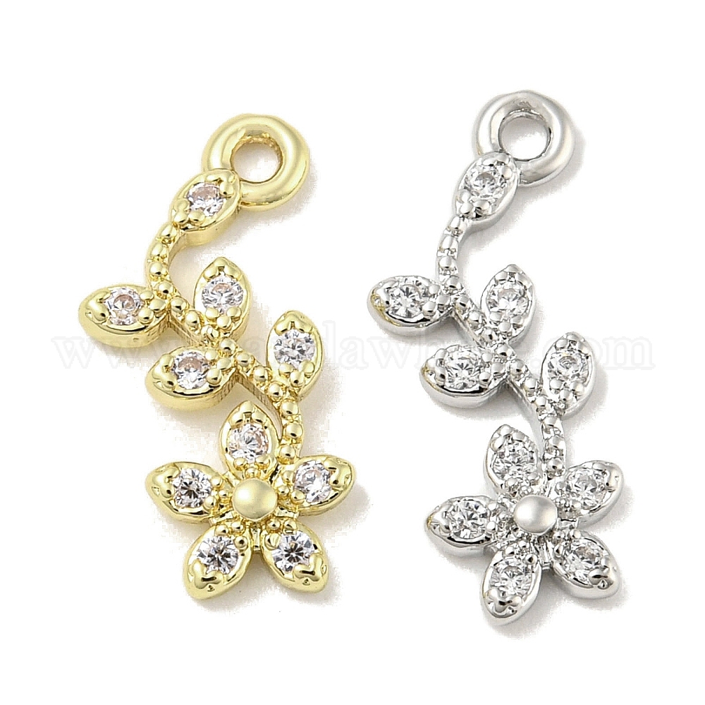 • Платина Подвеска из латуни с микропаве и кубическим цирконием s, долговечный, без кадмия, без никеля и без свинца, цветок, платина, 16x8x2 мм, отверстие : 1.2 мм