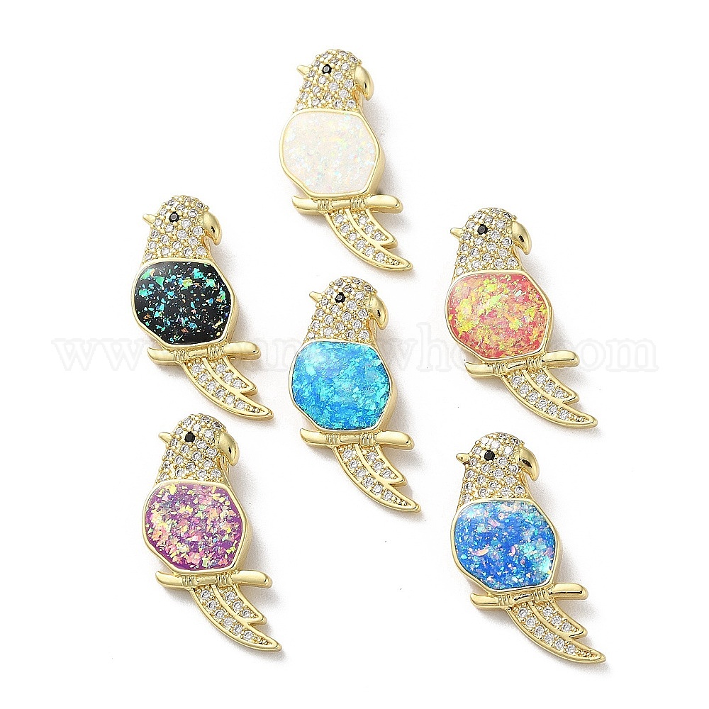 Латунные микропаве прозрачные подвески с фианитом, без кадмия и без свинца, с синтетическим опалом, реальный 18 k позолоченный, птица