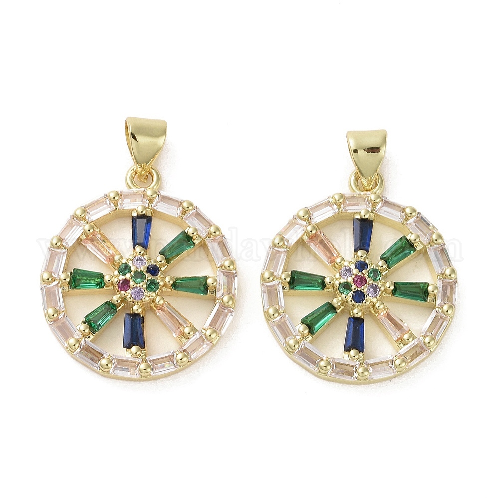 Латунные микро-паве красочные кубические циркониевые подвески, без кадмия и без свинца, колесо