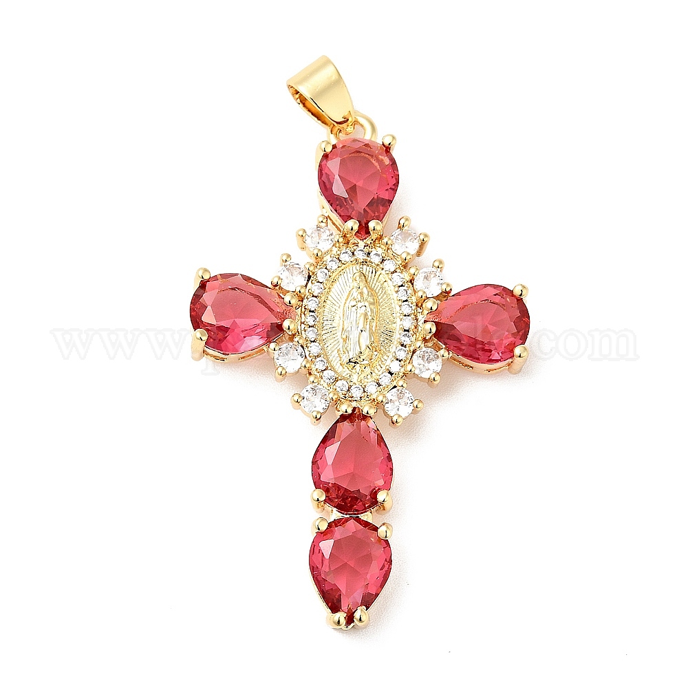 Реечное покрытие латунь микро паве разноцветные подвески из кубического циркония, без кадмия и без свинца, крест со святым