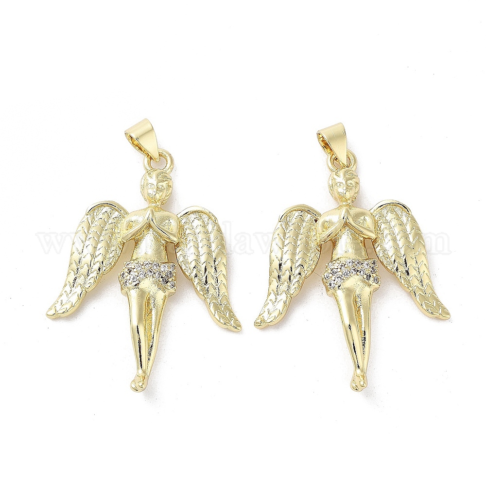 Покрытие стойки, подвески из латуни ангела с микро-паве и кубическим цирконием, без кадмия и без свинца, долговечный, реальный 18 k позолоченный