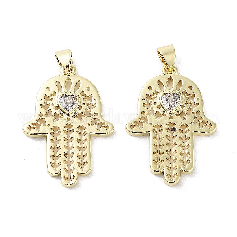 Покрытие стойки Хамса, ручная латунь, микро-паве, подвески из кубического циркония, без кадмия и без свинца, долговечный, реальный 18 k позолоченный