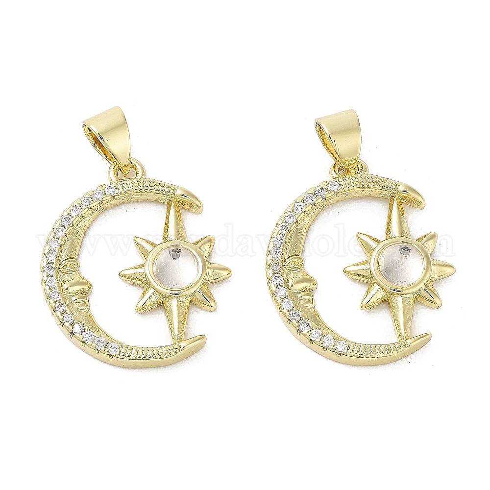 Подвески из латуни с лунным и звездным покрытием из кубического циркония с микро-паве, со стеклом, без кадмия и без свинца, долговечный, реальный 18 k позолоченный