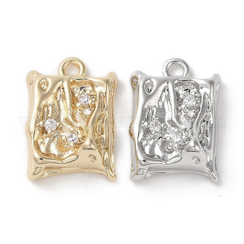 Латунные микропаве прозрачные подвески с фианитом, без кадмия, без никеля и без свинца, прямоугольные