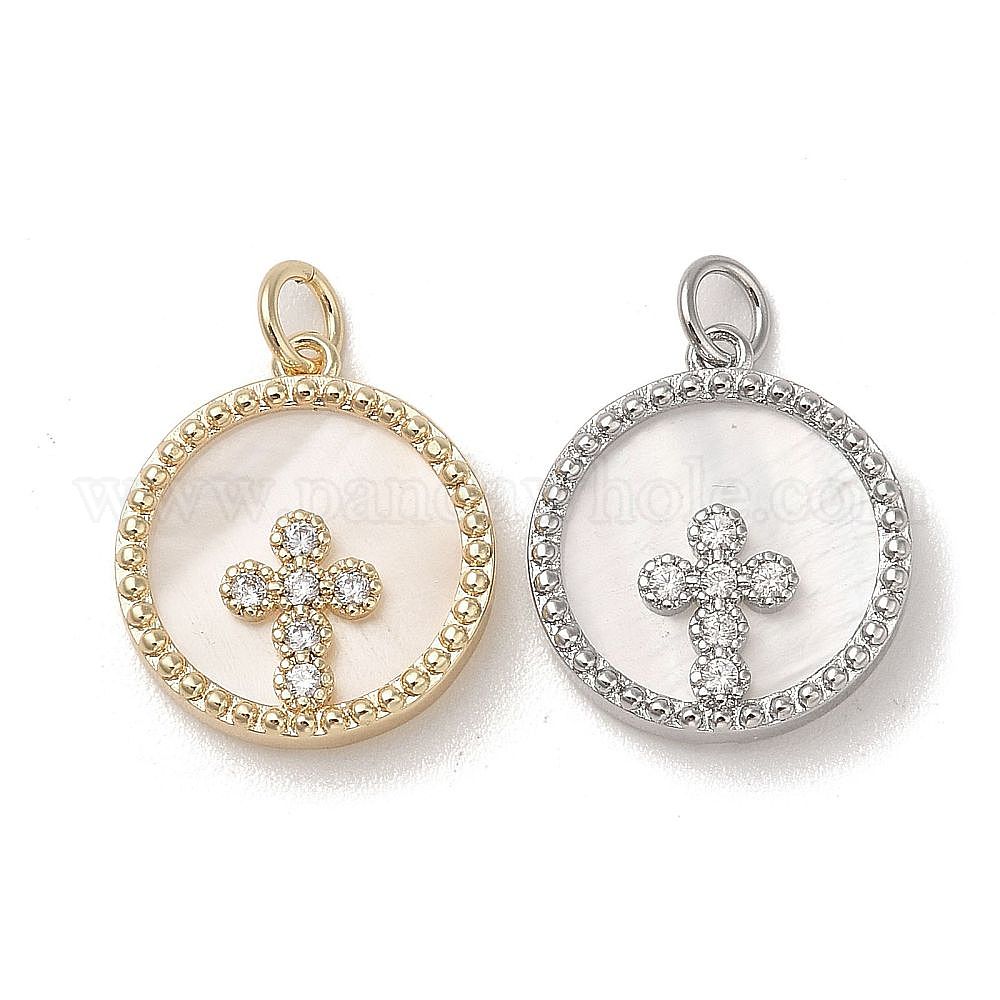 Латунные подвески из ракушки, с четким кубического циркония, без кадмия, без никеля и без свинца, круглые с крестом