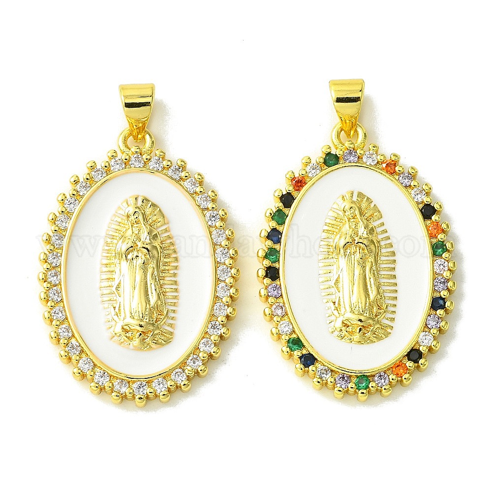 Настоящие 18 k позолоченные латунные подвески с микропаве и кубическим цирконием, с эмалью, без кадмия, без никеля и без свинца, овальный и девственный