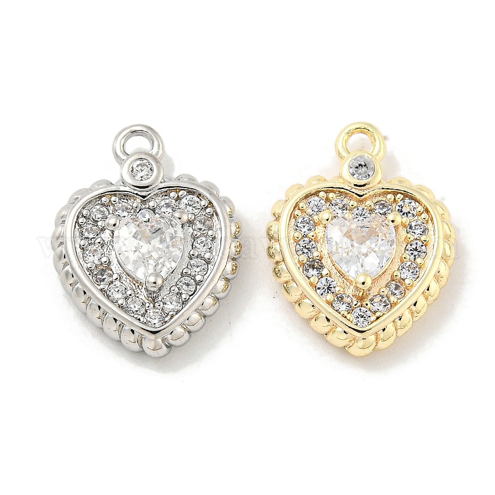 Латунные микропаве прозрачные подвески с фианитом, без кадмия, без никеля и без свинца, сердце прелести (02SFBB)