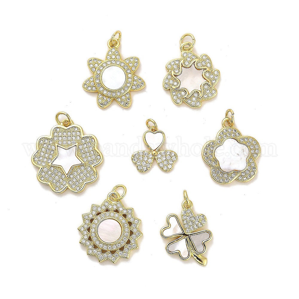 • Цветок Латунные микропаве прозрачные подвески с фианитом, без кадмия и без свинца, с оболочкой, Кольца прыжок, реальный 18 k позолоченный, цветок, 19x17x3 мм, отверстие : 3.5 мм