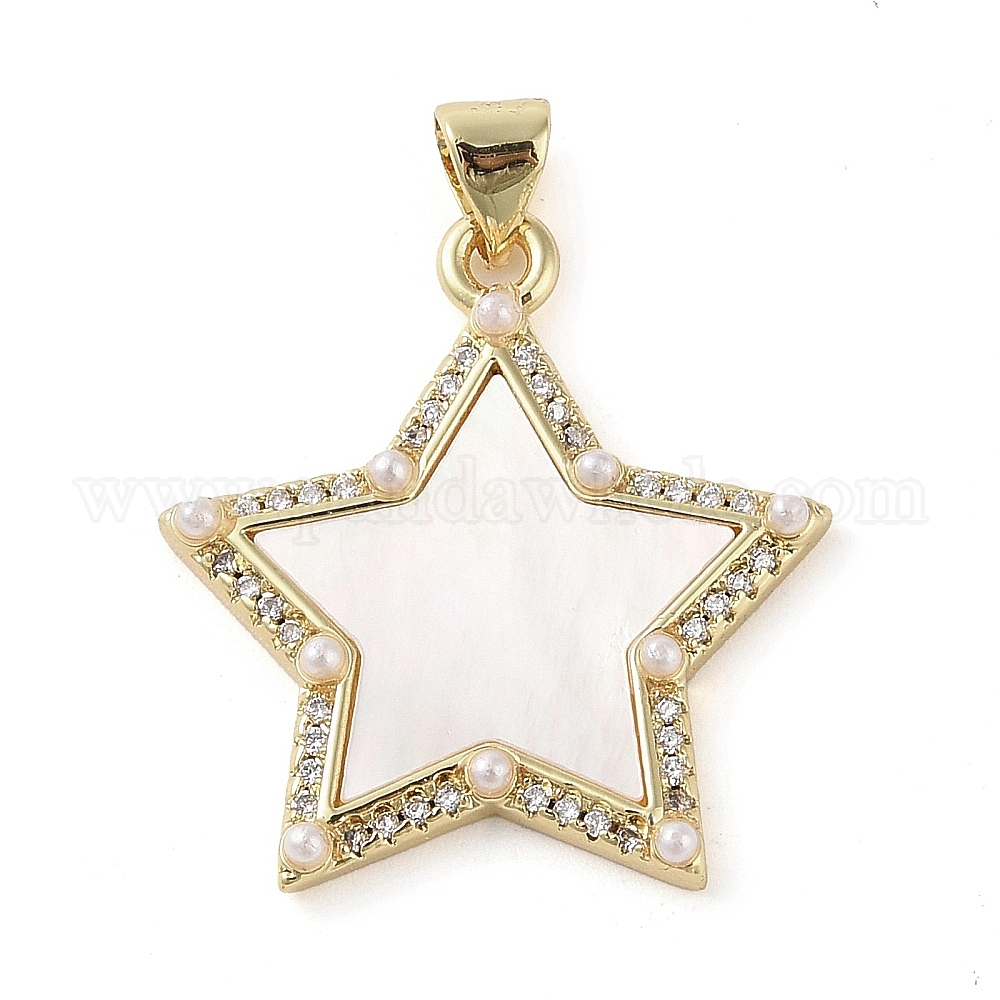 Латунные микропаве прозрачные подвески с фианитом, без кадмия и без свинца, с ABS имитации жемчуга, звезда