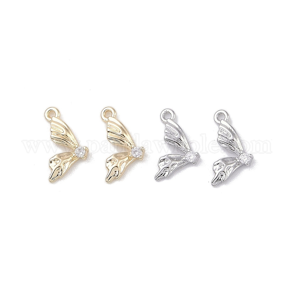 Латунные микропаве прозрачные подвески с фианитом, без кадмия, без никеля и без свинца, прелести крыльев бабочки