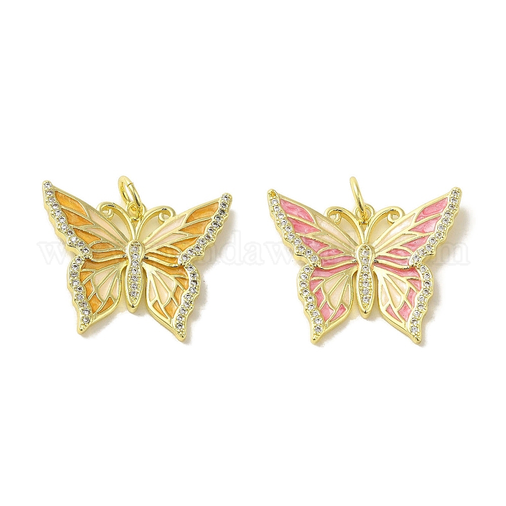 Подвески из латуни-бабочки с эмалью и цирконием микро-паве, без кадмия, без никеля и без свинца, реальный 18 k позолоченный, с целью перехода в кольце