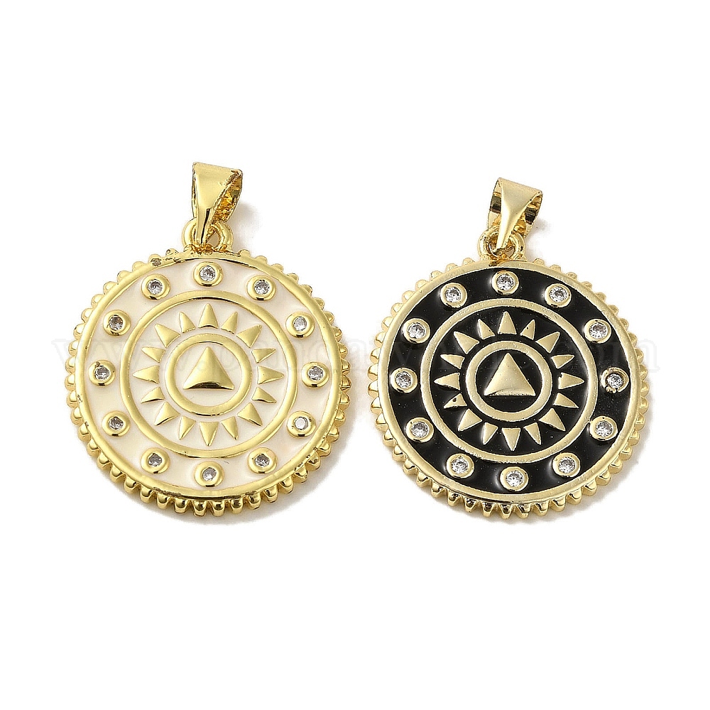 Подвески из латуни, эмали, микропаве и циркония, без кадмия, без никеля и без свинца, реальный 18 k позолоченный, круглые
