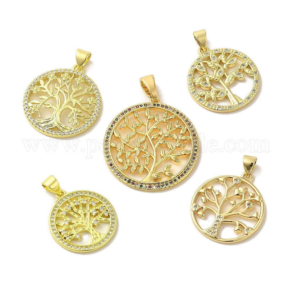 Латунные микро проложить кубического циркония подвески, без кадмия, без никеля и без свинца, круглый с деревом жизни