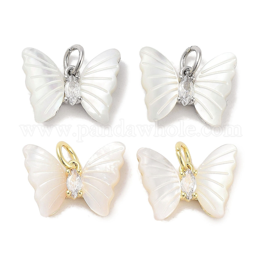 Латунные микро проложить кубического циркония подвески, без кадмия, без никеля и без свинца, с раковиной и прыгать кольцо, бабочка (02SN86)