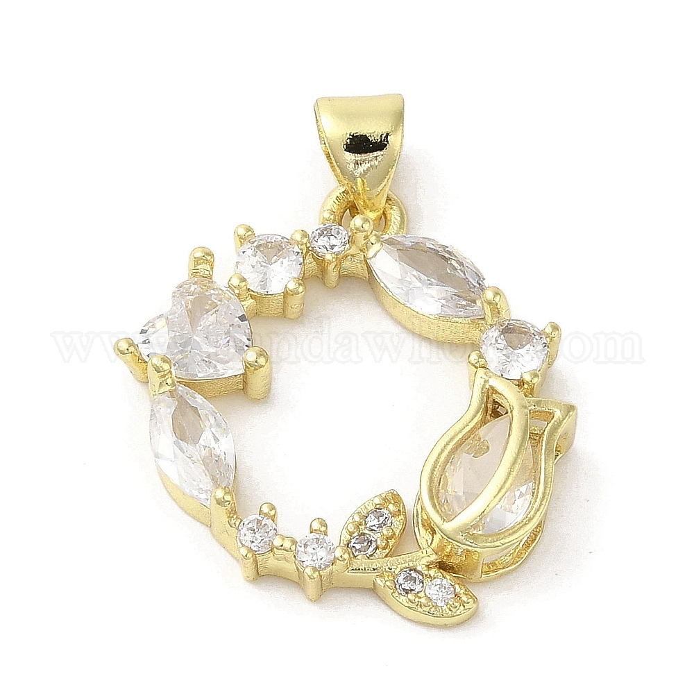 • Настоящее золото 18K Стойка металлическая латунная микропрофилированная кубическая циркония подвески, цветок, долговечный, без кадмия и без свинца, реальный 18 k позолоченный, 21.5x20.5x5 мм, отверстие : 3.5x3 мм