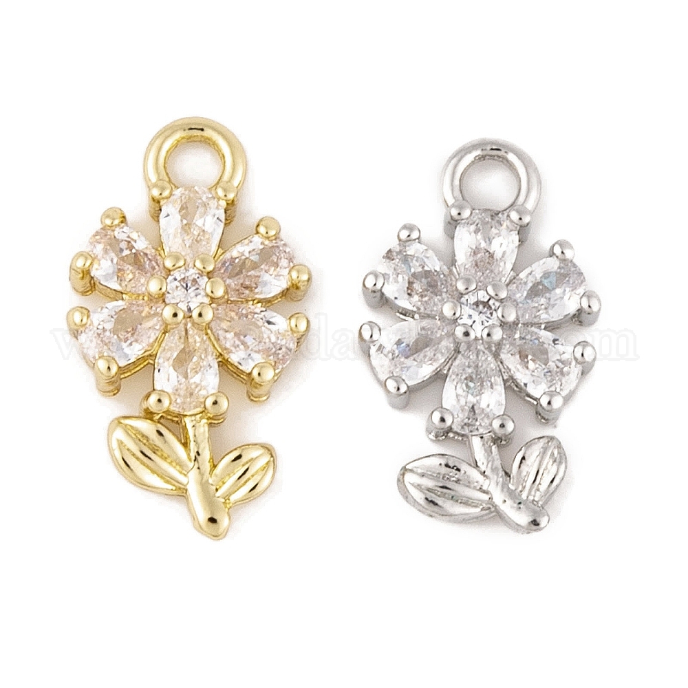 Латунные микропаве прозрачные кубические циркониевые подвески, без кадмия, без никеля и без свинца, долговечный, цветок