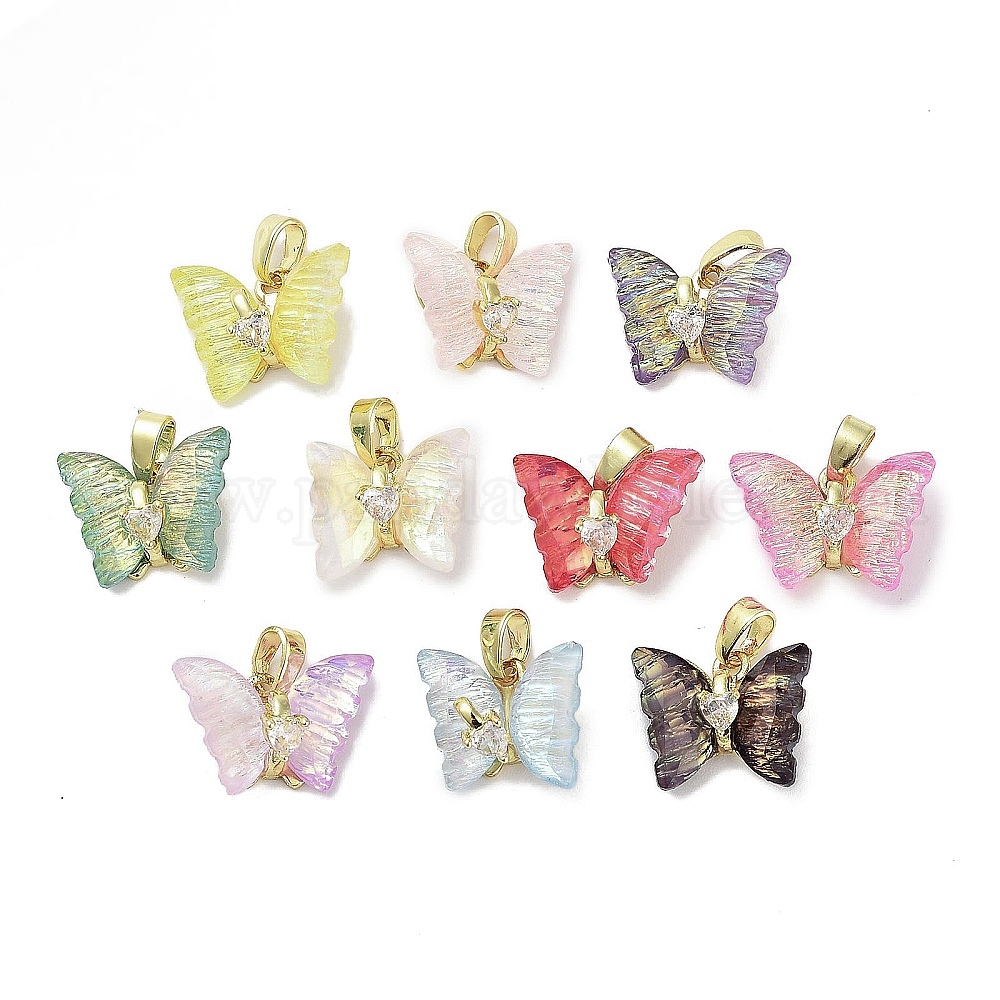Настоящие позолоченные подвески из латуни с микропаве из кубического циркония, cmолой, долговечный, без кадмия и без свинца, бабочка