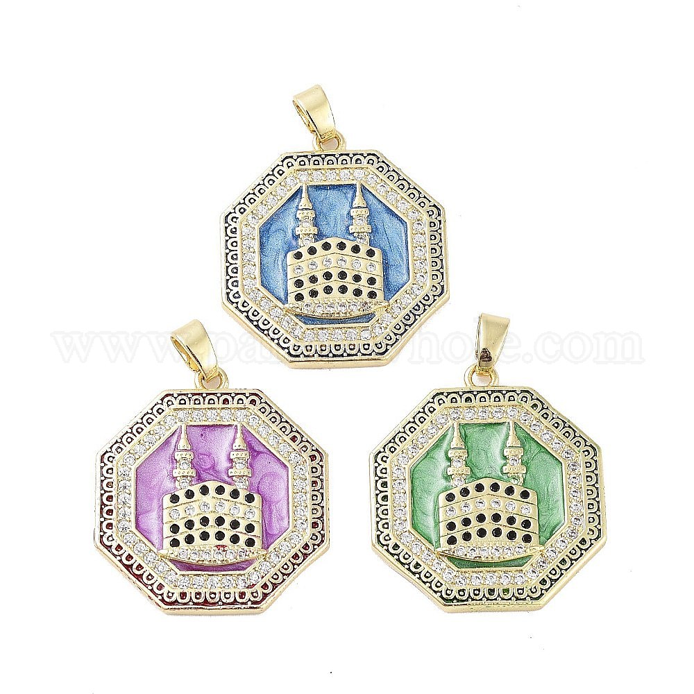 Покрытие стойки латунь микропаве прозрачные подвески из кубического циркония, с эмалью, долговечный, без свинца и без кадмия, шестигранные и замковые прелести