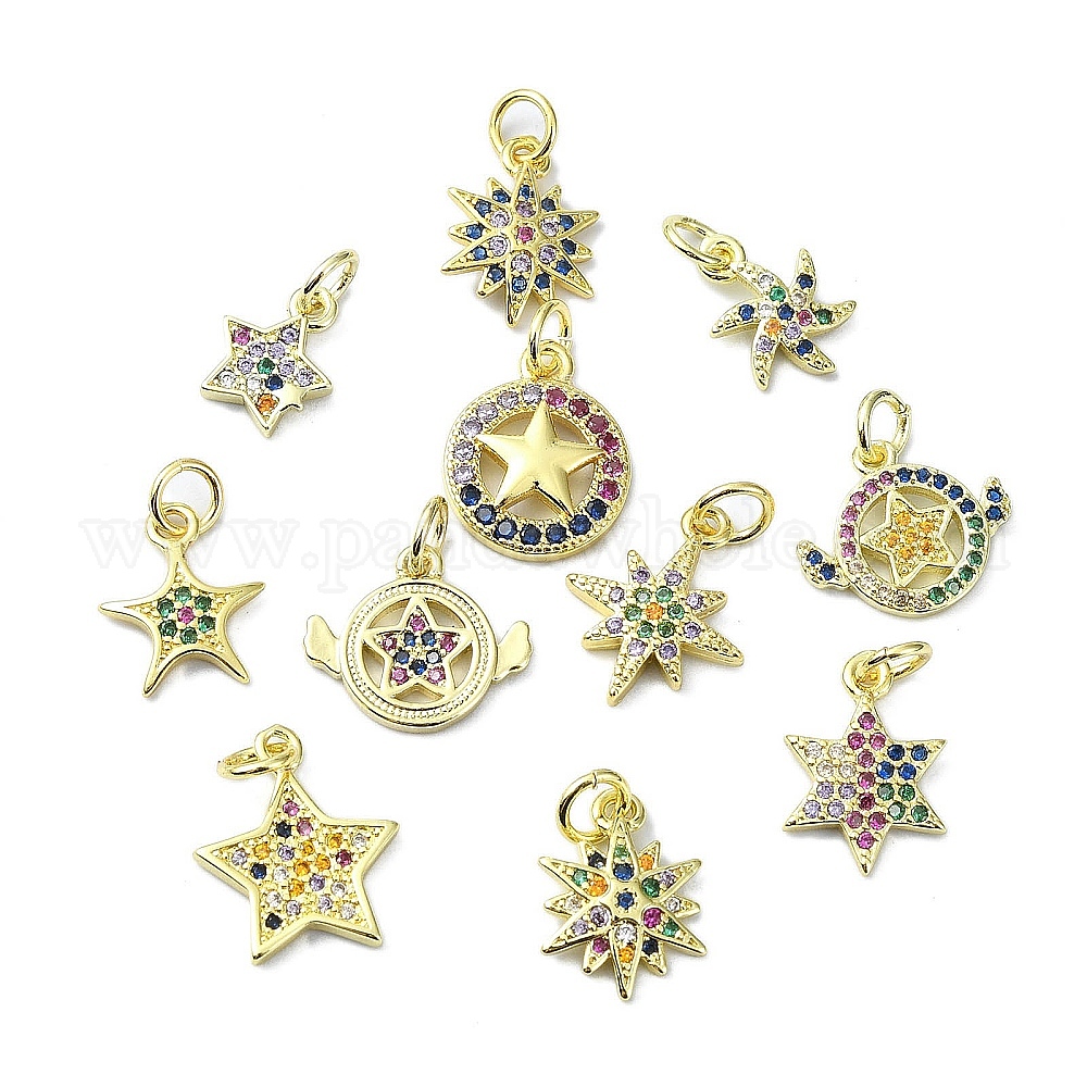 Латунные микро-паве красочные кубические циркониевые подвески, без кадмия, без никеля и без свинца, с целью перехода в кольце, звезда очарование