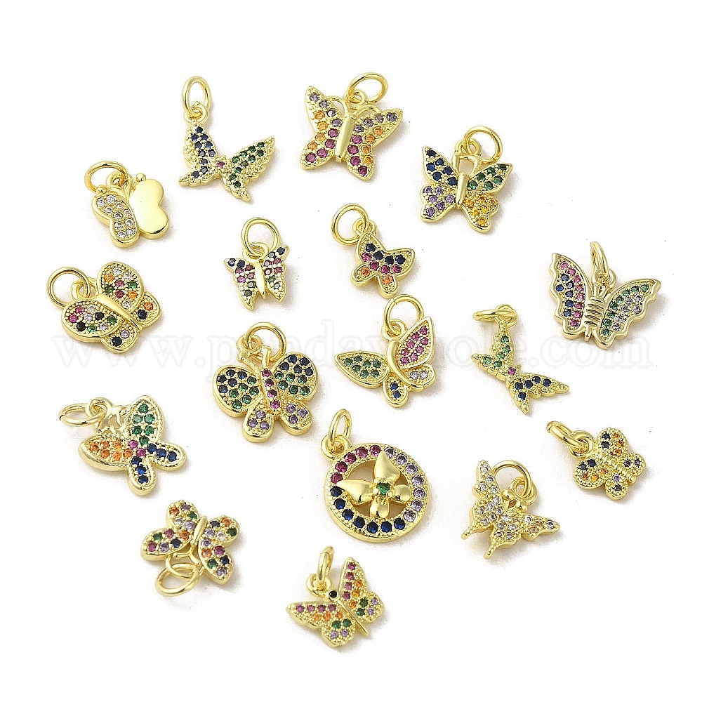 Подвески из настоящей 18k-позолоченной латуни с фианитами, без кадмия, без никеля и без свинца, с прыжковых колец, бабочка