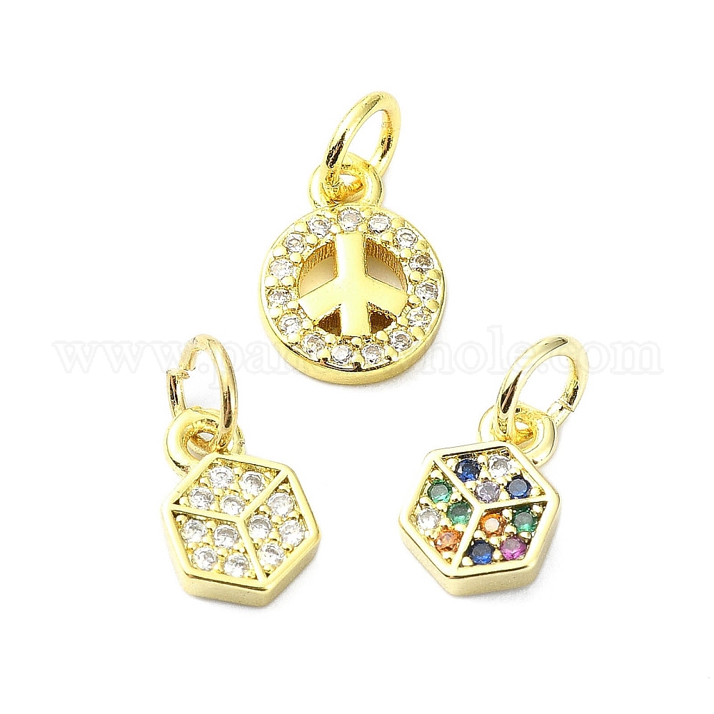 Латунные микро проложить кубического циркония подвески, без кадмия, без никеля и без свинца, с целью перехода в кольце, реальный 18 k позолоченный, Оберег шестиугольника и знака мира