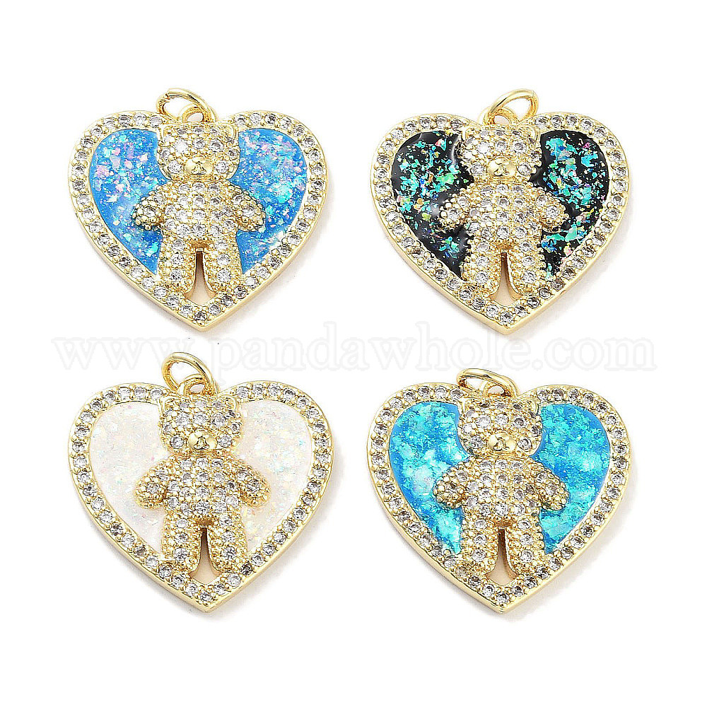 Латунные микропаве прозрачные подвески с фианитом, без кадмия и без свинца, с синтетическим опалом и кольцами-прыгунами, реальный 18 k позолоченный, сердце с медвежьими амулетами