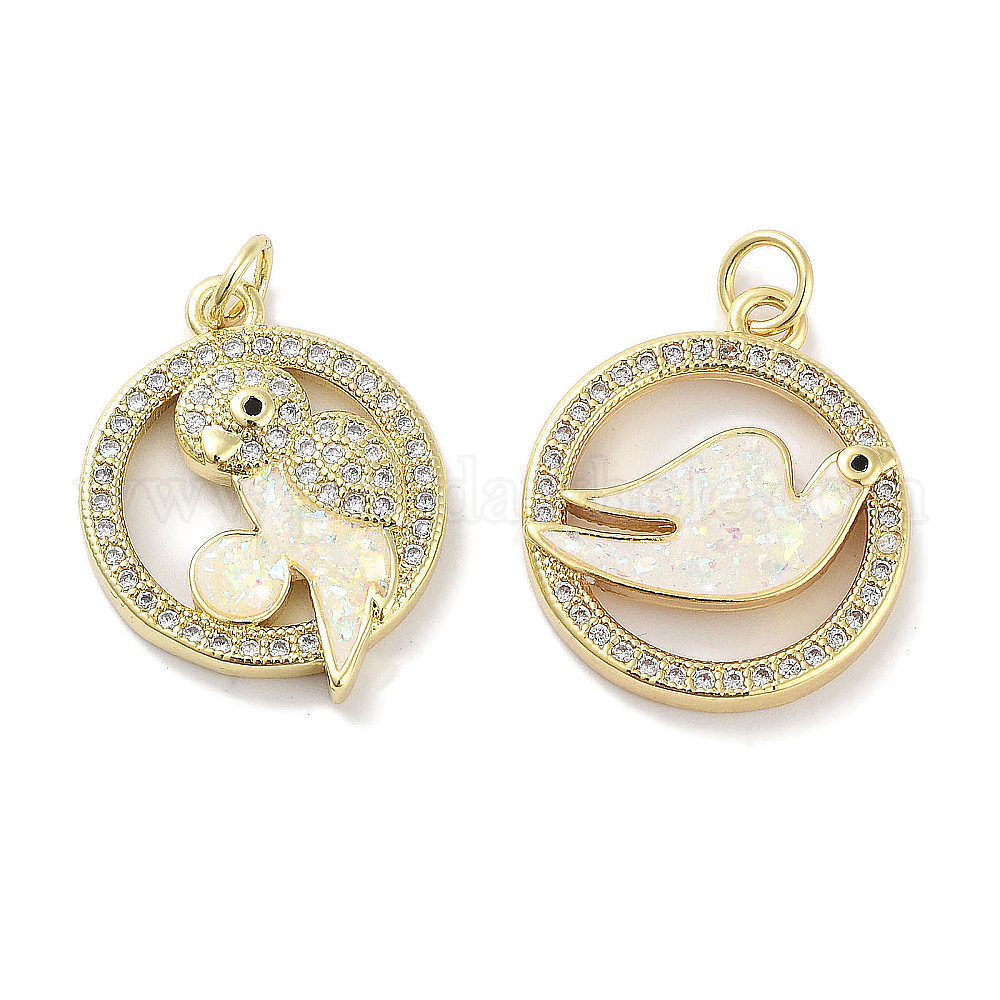 Латунные микропаве прозрачные подвески с фианитом, без кадмия и без свинца, с синтетическим опалом и кольцами-прыгунами, реальный 18 k позолоченный, кольцо с подвесками в виде птиц