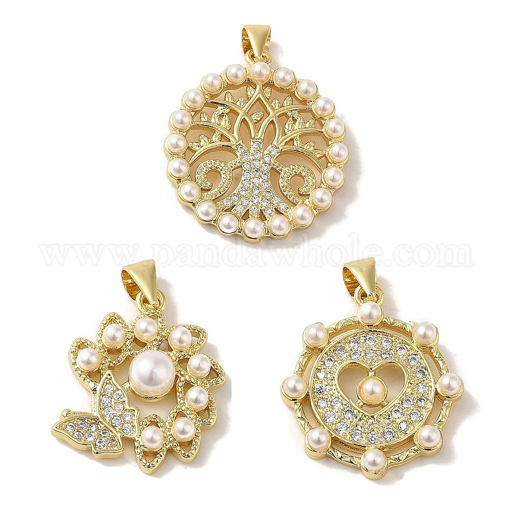 Покрытие стойки латунь микропаве прозрачные подвески из кубического циркония, с пластиковыми жемчужные бусины, без кадмия и без свинца, реальный 18 k позолоченный, долговечный