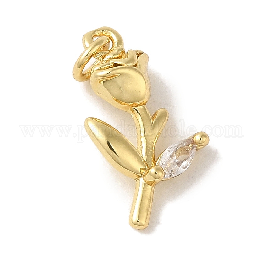 • Настоящее золото 18K Покрытие стойки латунь микропаве прозрачные подвески из кубического циркония, с целью перехода в кольце, без кадмия и без свинца, долговечный, цветок, реальный 18 k позолоченный, 16x8.5x4.5 мм, отверстие : 2.5 мм
