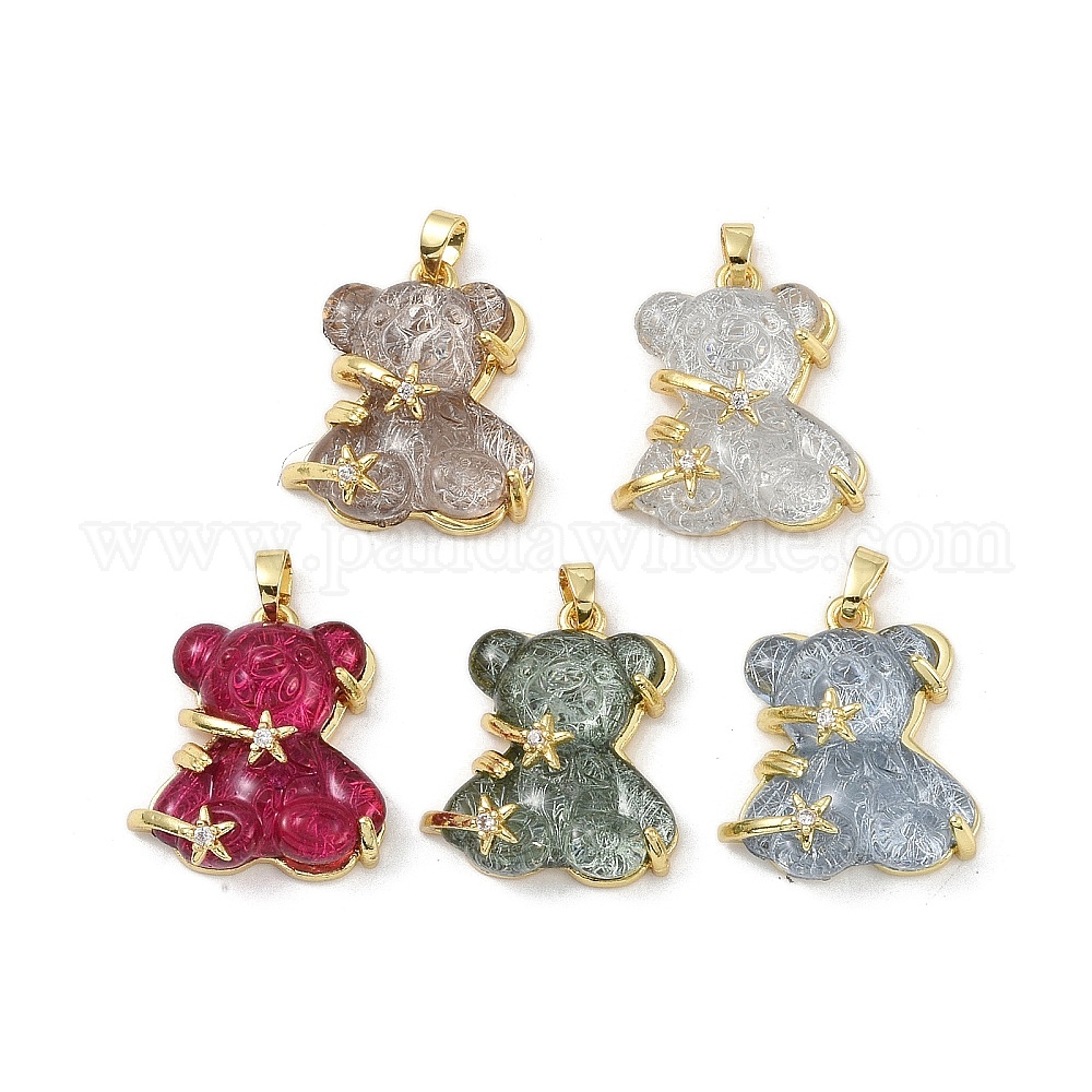 Стойки обшивки латунь кулон, с фианитами и смолы, без свинца и без кадмия, долговечный, медведь