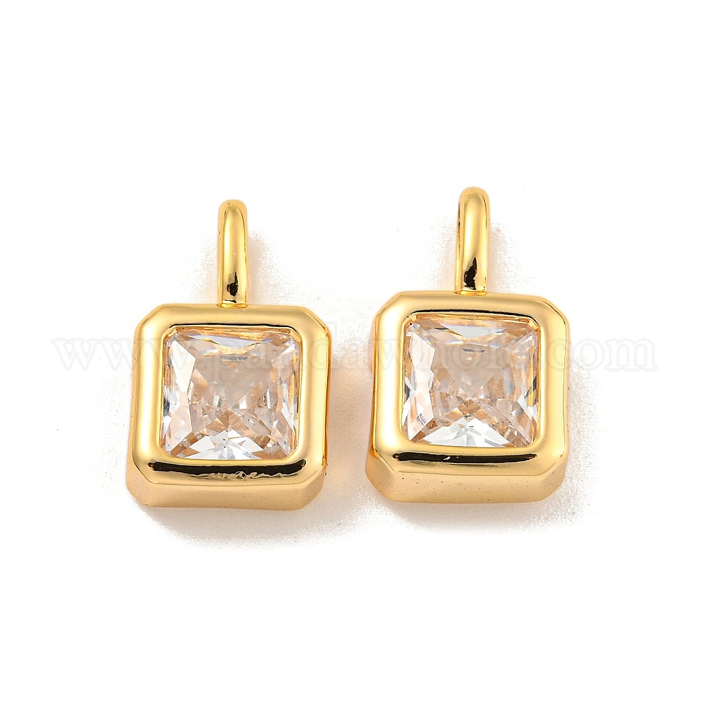 Латунь с подвесками из прозрачного кубического циркония, кубоид